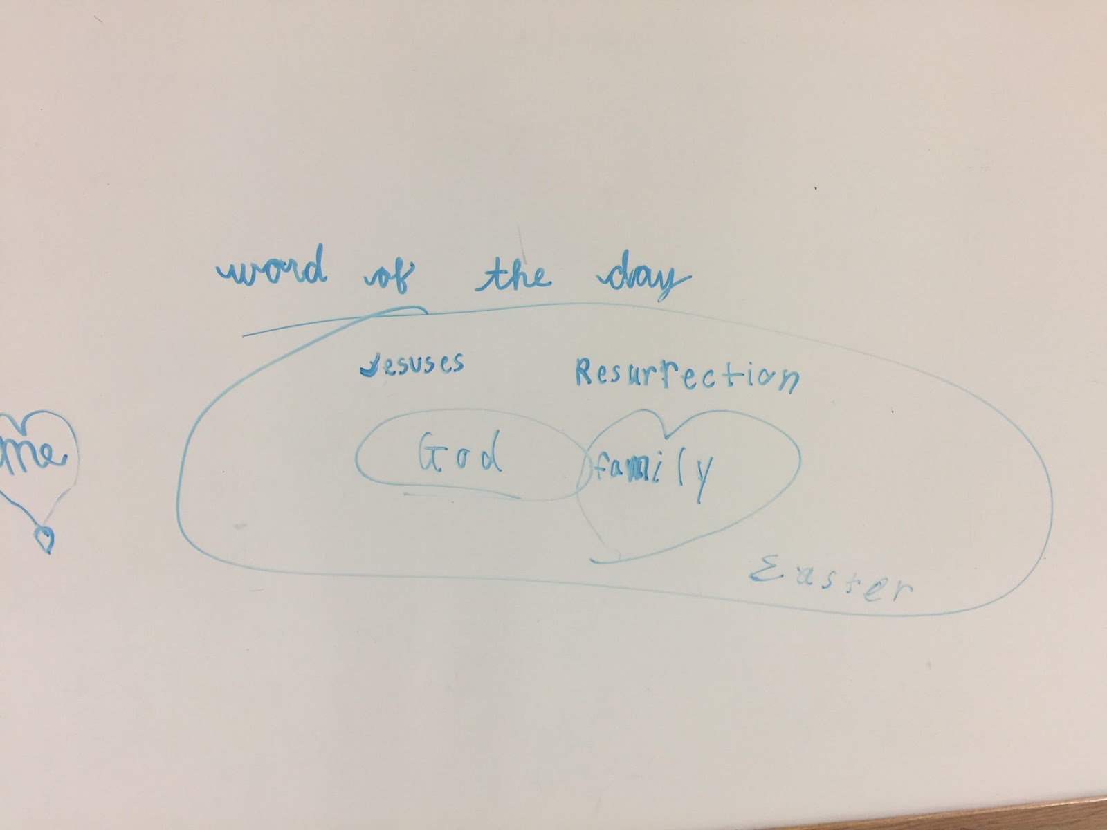 Like today’s photo. They have been learning about the death and resurrection of Jesus. They have learned songs and made crafts that express it. One of them wrote what he or she was thankful for- “Jesuses Resurrection.”